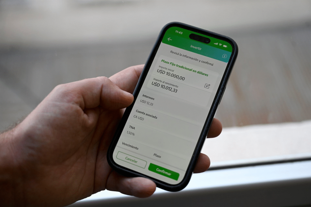 La nueva opción se encuentra disponible dentro del menú “Invertir” y permite seleccionar depósitos en pesos o en dólares. En el caso de la moneda estadounidense, los usuarios pueden elegir períodos que van desde 30 hasta 540 días, con tasas anuales que se ubican entre 1,5% y 5,5%, según el plazo elegido.
