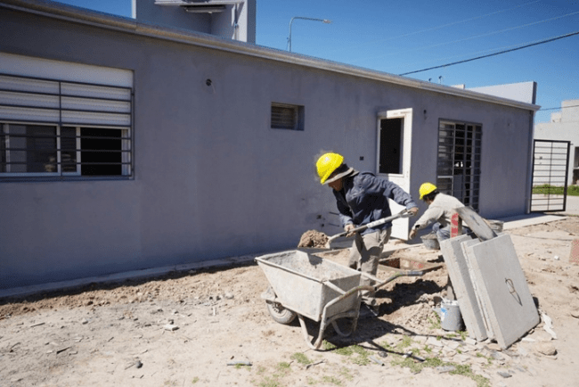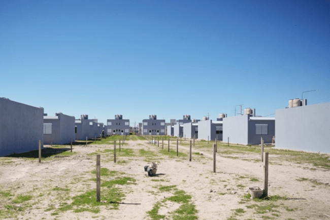 Las casas en marcha forman parte de un plan inicial de 476 unidades, del que ahora se decidió completar aquellas con mayor grado de avance. El diseño incluye viviendas de 64 metros cuadrados, con dos dormitorios: 16 en formato dúplex y 40 en planta baja.